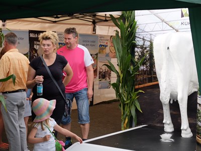 Kleine und große Gäste konnten einen Blick hinter die Stalltüren werfen und sehen, in welchem modernen Umfeld Schweine und Milchkühe heute leben. Mit Informationen zum Serrestall und unserem innovativen Weideboden präsentierte ID Agro den Stall der Zukunft.