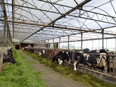 Im Jahr 2002 wurde Familie De Wagt klar, dass der damalige Liegeboxen-Laufstall ersetzt werden musste. Sie kamen mit Erik Lindeboom von ID Agro ins Gespräch. Serreställe waren bei Rindviehhalter damals noch nicht zu finden. Jan informierte sich und sah sich unter anderem bei einem Schweinezüchter um, der bereits mit dieser Art von Stall arbeitete. Sofort war er überzeugt und machte sich gemeinsam mit Erik Lindeboom und dem Team von ID Agro an die Planung eines neuen Stalles. "Die enorme natürliche Beleuchtung im Stall hat mich sofort angesprochen. Zusammen mit dem Preisunterschied war das der entscheidende Faktor." In der Zwischenzeit befinden sich in dem, 56 Meter langen und 28 Meter breiten, Stall einhundert Kühe und sechzig Kälber.