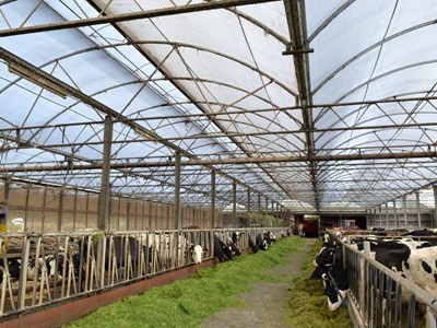 Jan und Kristian sind froh, dass sie sich mit einer neuen Membran auf den Bögen fortbewegen können. In einem Stall, der ohnehin gut funktioniert. Mit der neuen Bedachung ist es immer noch sehr hell und luftig im Serrestall. "Fruchtbarkeit und Produktionsergebnisse sind gut und besser als im alten Stall. Das ist ein großer Unterschied. Aber mit Zahlen ist das schwer zu beweisen. Schließlich sind die Ergebnisse trotz eines neuen traditionellen Stalls wahrscheinlich besser als in dem alten, stickigen Stall", sagt Kristian. "Wir haben gehört, dass viele Kollegen mit einem Serrestall auch weniger Klauenprobleme haben. Besonders Mortellaro nimmt bei ihnen ab. Leider leidet unser Vieh immer noch unter dieser Infektion. Wir halten jedoch das Stallkonzept nicht dafür verantwortlich, sondern die geschlossenen Böden, mit denen wir arbeiten. Die Kühe bleiben auch hier im Sommer drinnen und trocken und sauber kriegen wir diese Böden nicht.