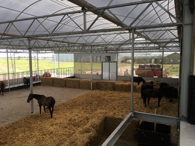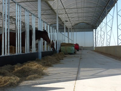 • Die großen Mengen an Licht, das die transparente Dachbedeckung durchlässt, tragen zum Wohlbefinden Ihrer Pferde bei.
