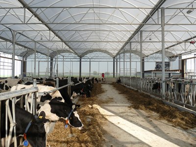 Der Serrestall® ist ausgezeichnet geeignet als Unterkunft für Milchziegen. Das Tageslicht hat einen großen Einfluss auf die Fruchtbarkeit der Tiere. Ziegen erleben den Übergang der Saisonen, das kürzer werden der Tage während des Übergangs von Sommer nach Winter, in einem Serrestall® besser.