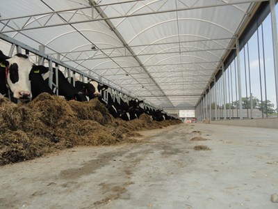 Für Warteräume und Melkställe kann der Spannabstand vergrößert werden, sodass sowohl Rapid-‐ Exit Seite-‐an-‐Seite als auch Laufrad Melkställe mit unserer Dachkonstruktion überdacht werden können.