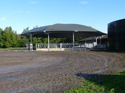 Auf dem Hof von Theo und Dory van der Gun wurde das europaweit erste Roundhouse 22 gebaut. Da die friesischen Milchviehhalter auf ihrem Betrieb regelmäßig Gäste empfangen, haben sie sich für das Roundhouse entschieden. „Dieser offene Stall ist tiergerecht. So ein Stall passt zu uns", sind die beiden überzeugt.