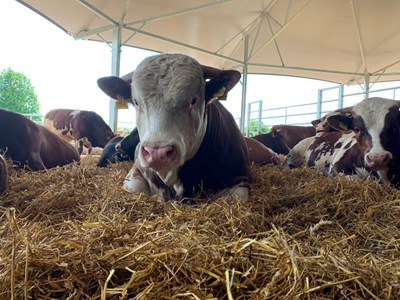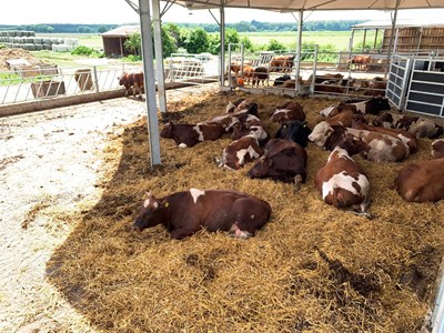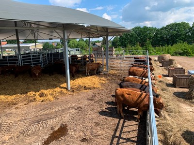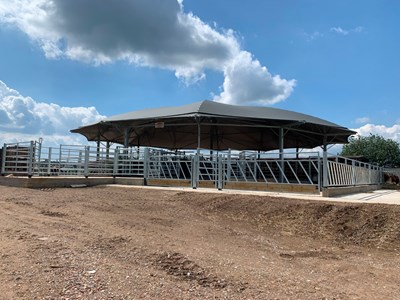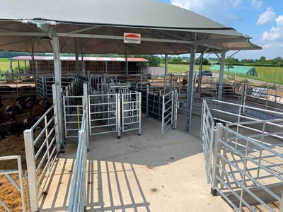 In diesem speziellen Roundhouse werden Bio-Mastbullen gehalten. Bei diesem Stallentwurf ist das Dach des Roundhouse 22 in vier Buchten unterteilt. Jede Bucht hat einen Laufhof im Verhältnis 1:0,75 der Innenfläche. Wenn Bullen in verschiedene Altersstufen untergebracht sind, kann der Stall bis zu 120 Tiere aufnehmen.