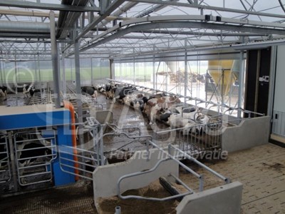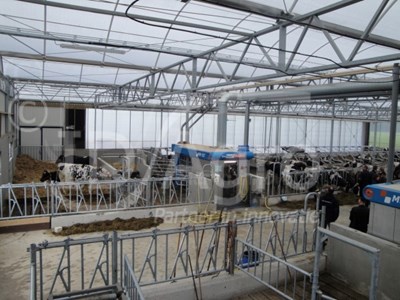 Im Gelderland wurde dieser Serrestall realisiert. Dabei entschied man sich für eine kluge und kompakte Einteilung des Stalles. So bietet der Stall hat eine besonders freie Überspannung und ist mit einem Boxeinstreu-Roboter ausgestattet. Im Stall wird eine speziell bearbeitete Gülle eingesetzt.